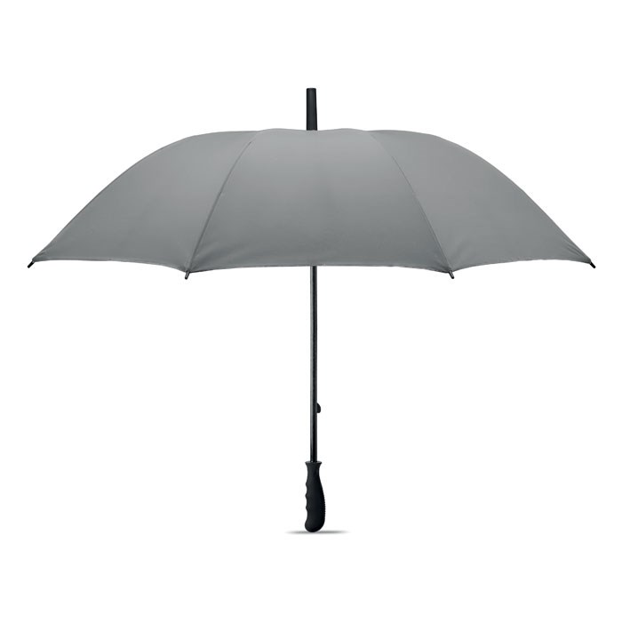 23'' Windproof Regenschirm mit hoch reflektierenden Polyester. Stock und Stangen aus Fiberglas. Spitzen und Krone aus schwarzem Kunststoff. Schwarzer gummierter Griff. Manuelle Öffnung und Schließung.