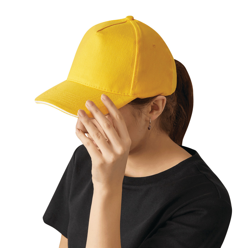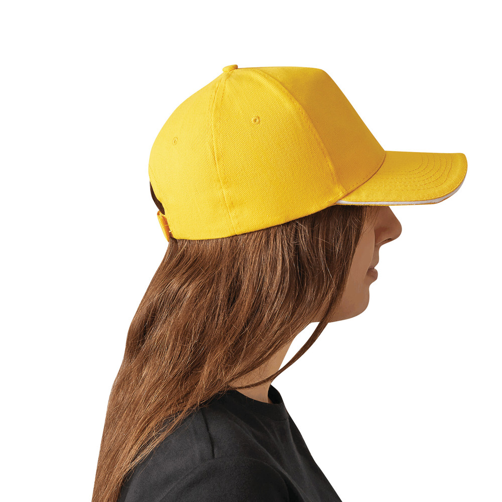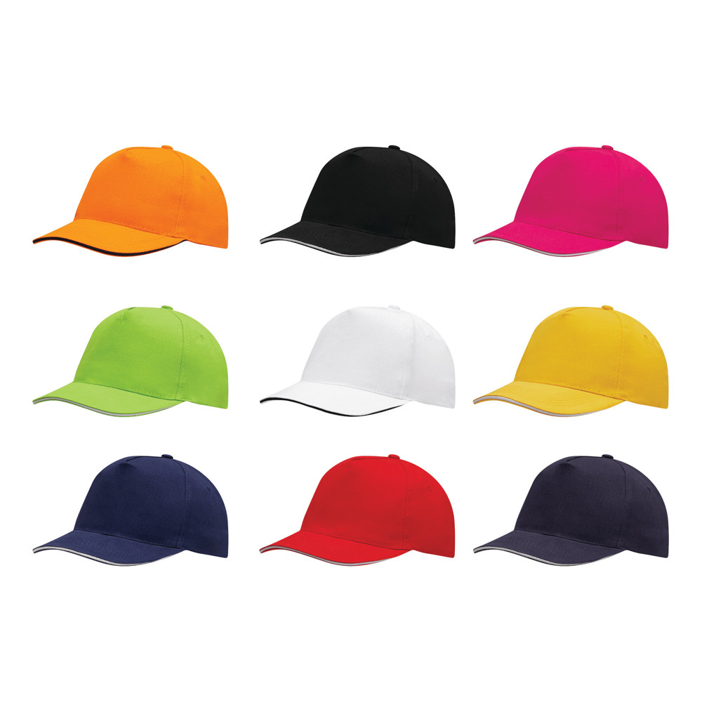 5-Panel-Sandwich-Cap WALK: verstärktes Frontsegment, 4 gestickte Luftlöcher, Knopf, größenverstellbarer Klettverschluss am Hinterkopf, 100% Baumwolle (heavy-brushed)