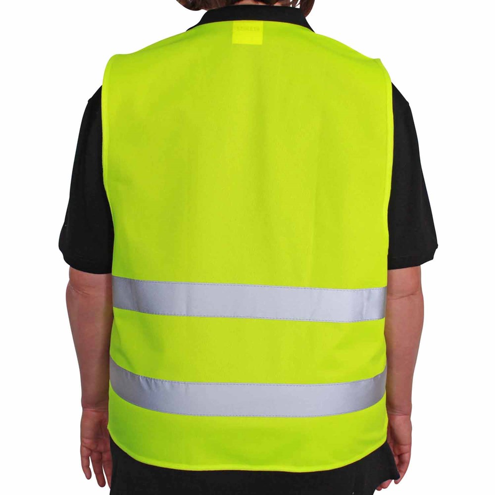 Unsere Warnweste Large aus 100% Polyester wird nach EN ISO 20471 produziert und ist TÜV-Rheinland geprüft. Mit Anleitung einzeln im wiederverschließbaren Polybeutel verpackt. Durch die beiden extra langen Klettverschlüsse ist die Größe variabel einstellbar. Mit zwei reflektierenden Streifen und Einleger in sieben Sprachen mit den gesetzlichen Pflichtangaben.