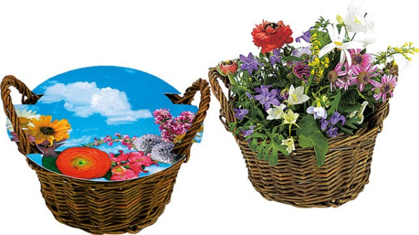 Weiden Körbchen blühendes Wachstum, bunte Blumenmischung, inkl. Digitaldruck 1-4/0 c