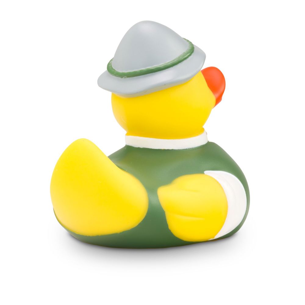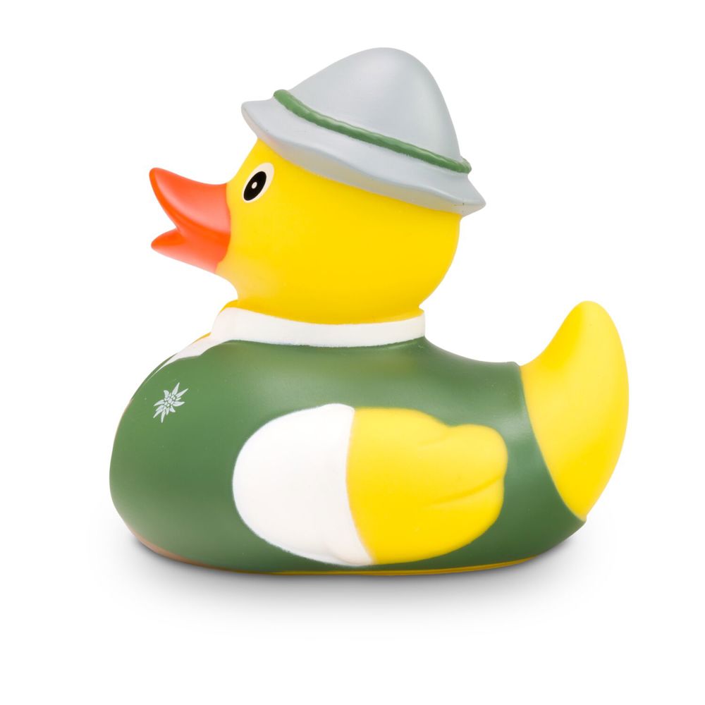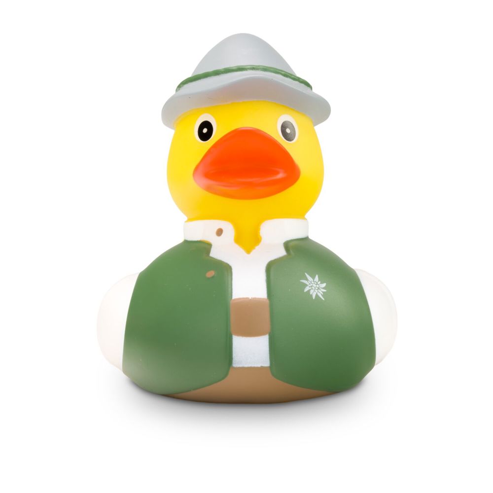 Servus! Anton Alm begrüßt Sie ganz herzlich auf seinem Alpen-Domizil. Er trägt ein weißes Trachtenhemd mit grüner Weste inklusive Edelweiß-Print. Auch der traditionelle, graue Filzhut mit einer grünen Kordel darf nicht fehlen. Er fühlt sich auf seiner Bergütte in den Bergen sehr wohl, egal ob im Allgäu in Bayern, in Tirol in Österreich oder in Südtirol in Italien. Größe: ca. 8 cm. Inklusive Quietschventil