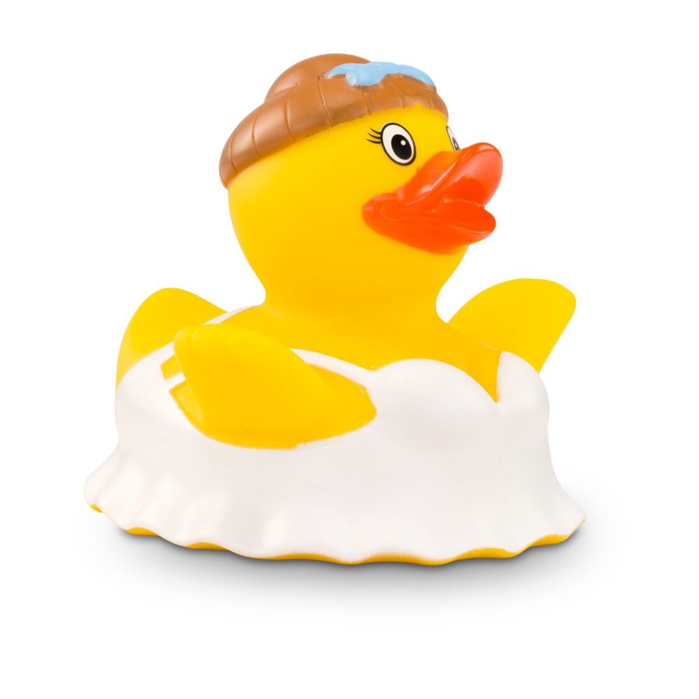 Bella Ballerina möchte gerne professionelle Balletttänzerin werden. Bis dahin tanzt sie mit ihrem weißen Gewand elegant durch den Ententeich und hebt dazu ihre beiden Flügel in die Höhe. Ihre Wimpern sind dezent geschminkt und im hochgesteckten Haar trägt sie eine blaue Schleife, um für das nächste Tänzchen perfekt auszusehen. Größe: ca. 8 cm. Inklusive Quietschventil