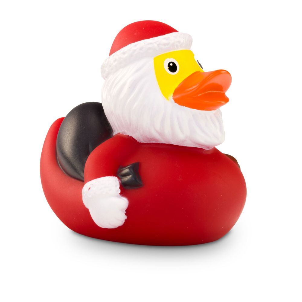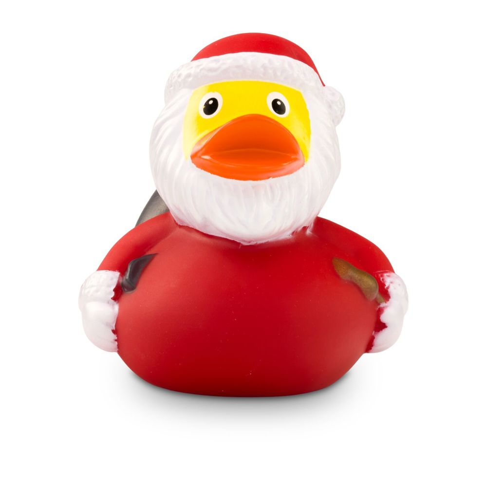 Eine besinnliche Zeit wünscht der Enten-Weihnachtsmann! Claus Christmas trägt einen klassisch roten Weihnachtsanzug mit passender Mütze, dazu hat er einen Geschenkesack auf dem Rücken und eine Glocke in der Hand. So verbreitet diese Badeente auch in Ihrem Badezimmer Weihnachtszauber zur Weihnachtszeit. Größe: ca. 8 cm. Inklusive Quietschventil