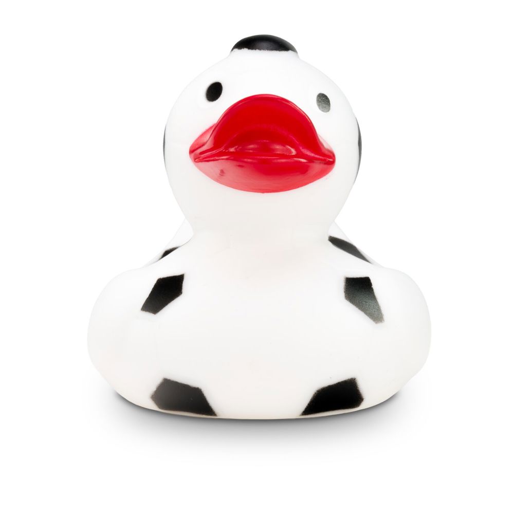 Anpfiff in der Badewanne! Franz Fußball bringt das Spielfeld zu dir nach Hause. Mit seinem schwarz-weißen Körper, der wie ein Fußball gestaltet ist, ist er der perfekte Teamplayer für alle Fußballfans. Größe: ca. 8 cm. Inklusive Quietschventil
