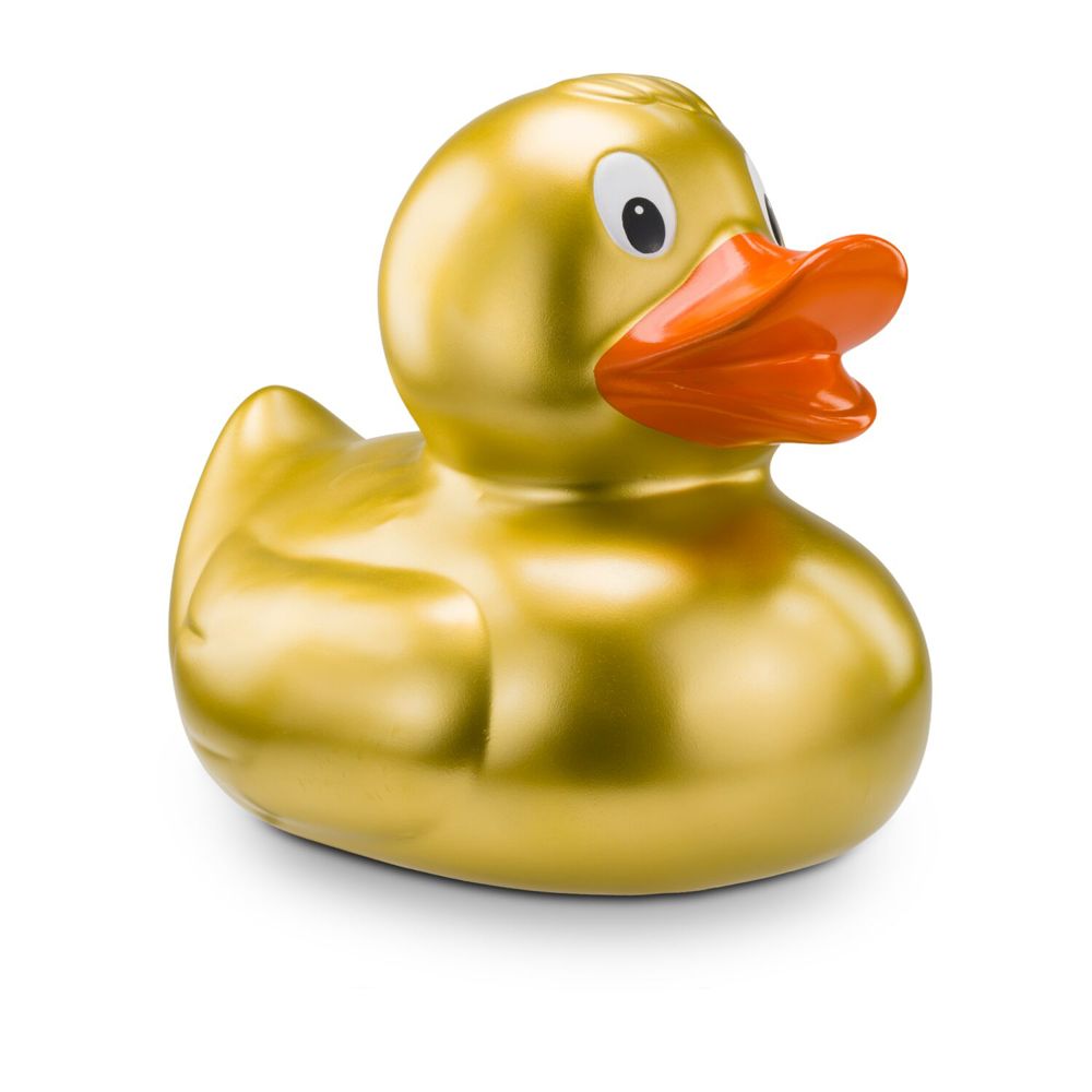 Groß, luxuriös und zeitlos - Goldmarie XXL zieht mit ihrem edlen goldenen Gefieder, dem leuchtend orangenen Schnabel und ihrem klassischen Entenkörper alle Blicke auf sich. Mit stolzen 30 cm Länge bringt diese XXL-Badeente goldenen Glanz ins Badezimmer und bleibt dabei ein stilvoller Klassiker. Als Mitglied einer großen Familie hat Goldmarie XXL noch weitere Geschwister, auch in anderen Farben. Größe: ca. 30 cm. Inklusive Quietschventil