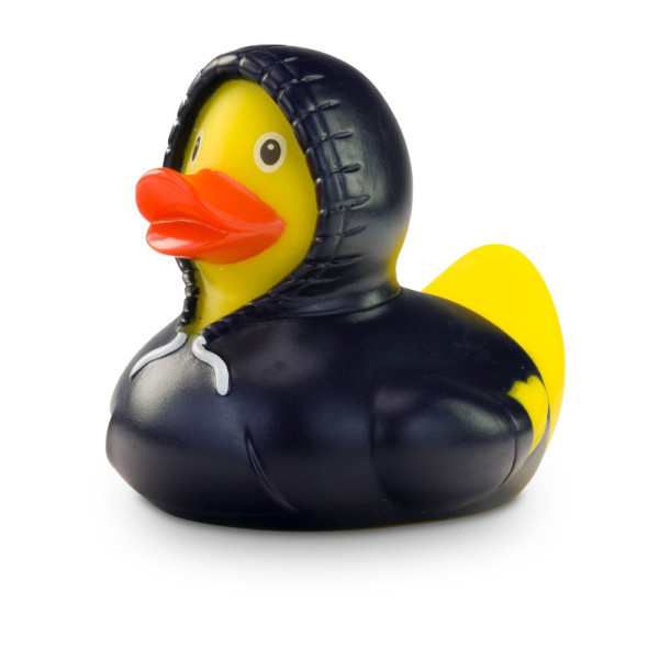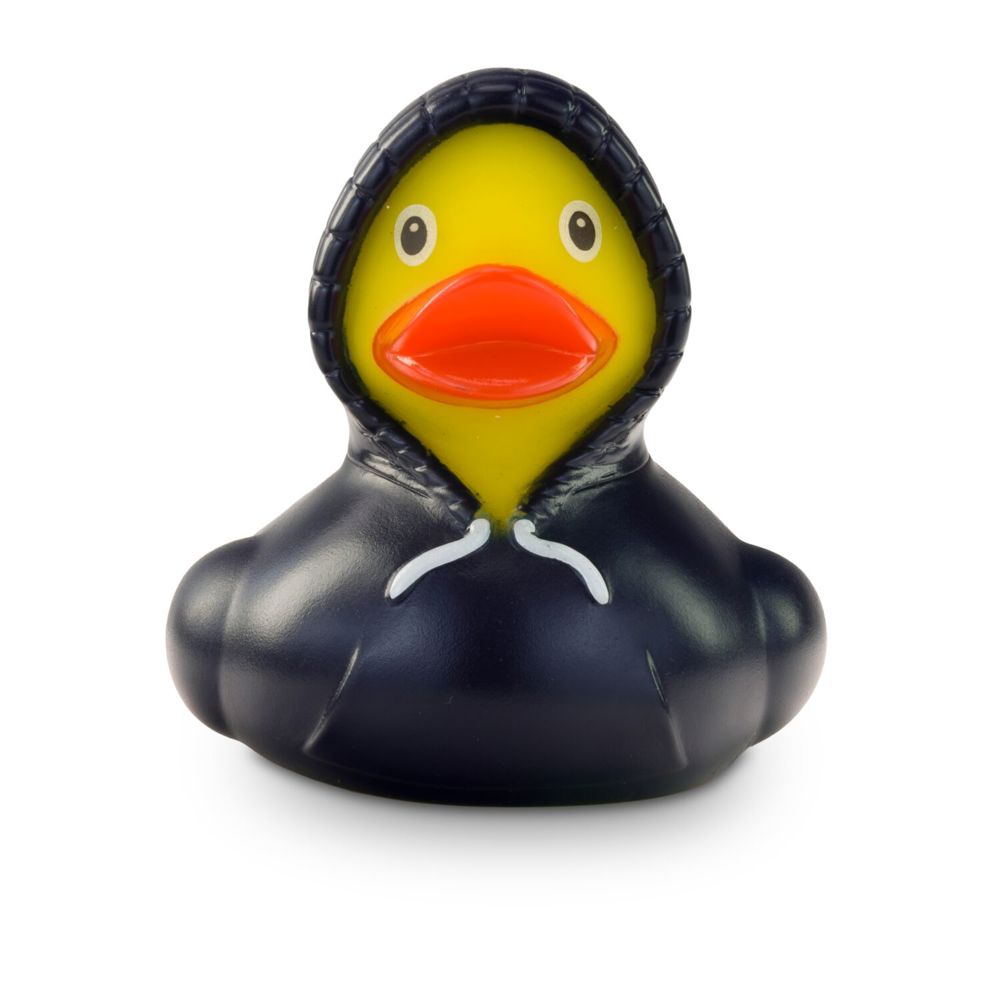 Hektor Hoodie ist die jugendliche Ente mit dem coolen Street-Flair. Er trägt einen gemütlichen blauen Kapuzenpullover, in dem eine Kordel eingearbeitet ist. Der Brustbereich eignet sich hervorragend für einen Druck. Größe: ca. 8 cm. Inklusive Quietschventil