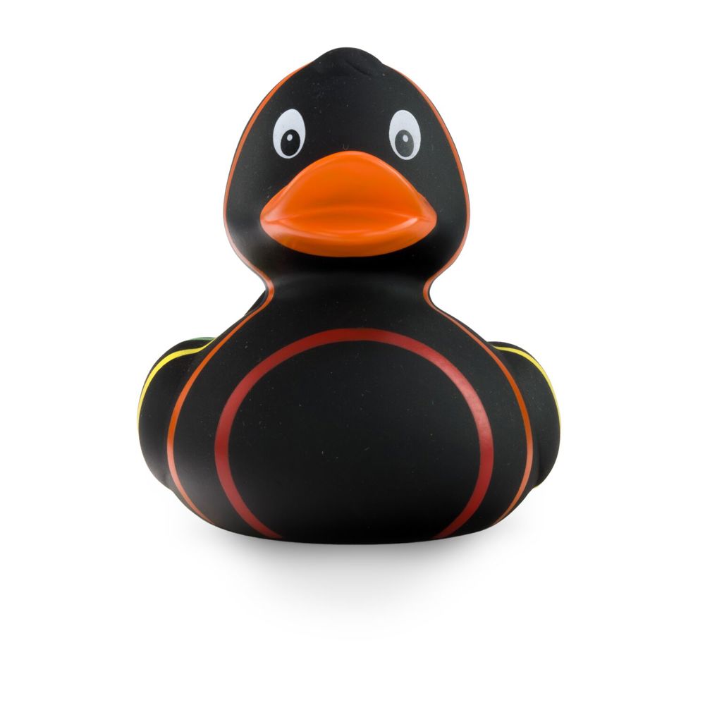 Rebecca Regenbogen - die coole Quietscheente für alle, die es bunt und trotzdem elegant mögen. Mit ihrem schwarzen Grundton und sechs leuchtenden Streifen in Pink, Blau, Grün, Gelb, Orange und Rot steht sie für besondere Vielfalt und ist ein echter Hingucker in jeder Badewanne. Größe: ca. 8 cm. Inklusive Quietschventil