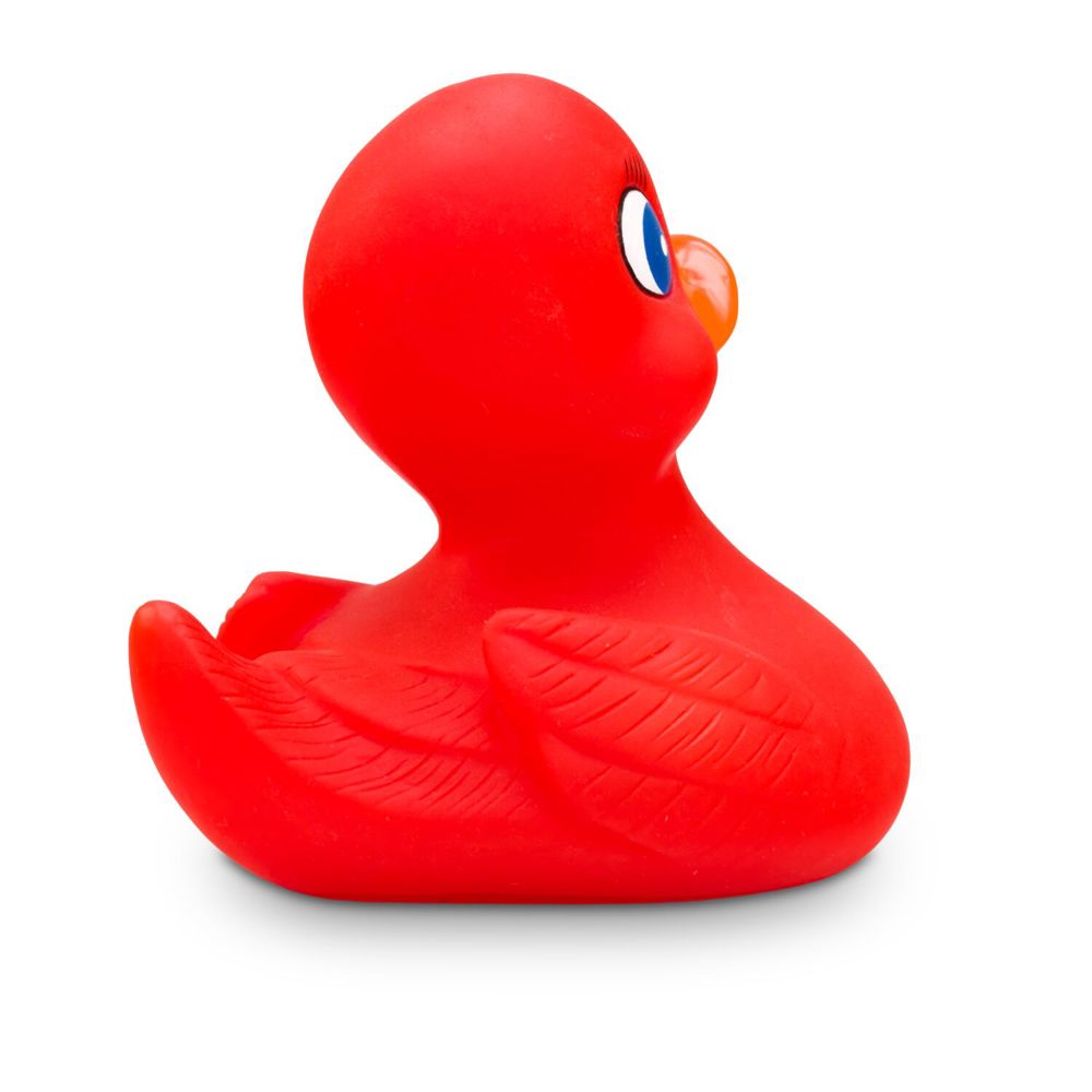 Ruby ist die elegante Schwester von Heidi - sie zieht mit ihrem leuchtenden Rot alle Blicke auf sich und bringt Farbe ins Badezimmer. Das charmante Aussehen verdankt die Badeente ihrem großen, schlanken Körperbau, ihren liebevoll geformten Wimpern und den strahlend blauen Augen. Größe: ca. 10 cm. Inklusive Quietschventil