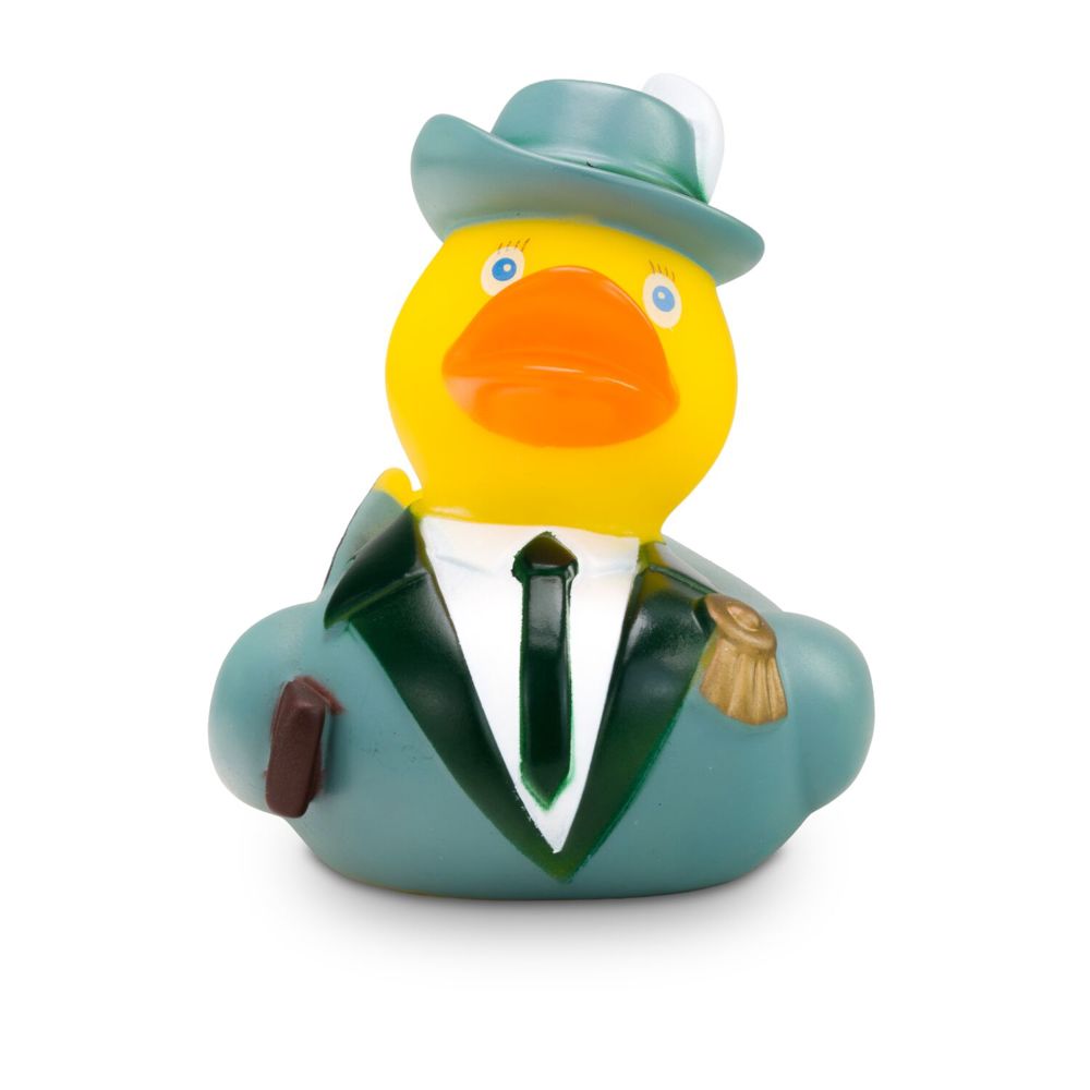 Aufgepasst, hier kommt unser Schützenkönig. Stephan Schütze ist der beste Schütze und sorgt mit Stil und Tradition für Stimmung auf dem Schützenfest. Als Mitglied im Schützenverein trägt er eine markante grüne Uniformjacke, ein Gewehr unter dem Arm, einen traditionellen Hut mit Feder auf dem Kopf und einen goldenen Orden auf der Brust. Horrido! Größe: ca. 8 cm. Inklusive Quietschventil