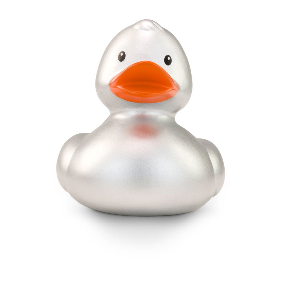 Klein, aber oho. Sylvies kleine Schwester überzeugt mit ihrem silbernen Gefieder, dem leuchtend orangenen Schnabel und ihrem formschönen Entenkörper auch im Kleinformat. Sie wirkt selbst als Mini-Ente besonders glamourös und doch zeitlos. Als Teil einer großen Familie klassischer Badeenten hat Sylvie noch weitere Geschwister, auch in anderen Farben. Größe: ca. 6 cm. Inklusive Quietschventil