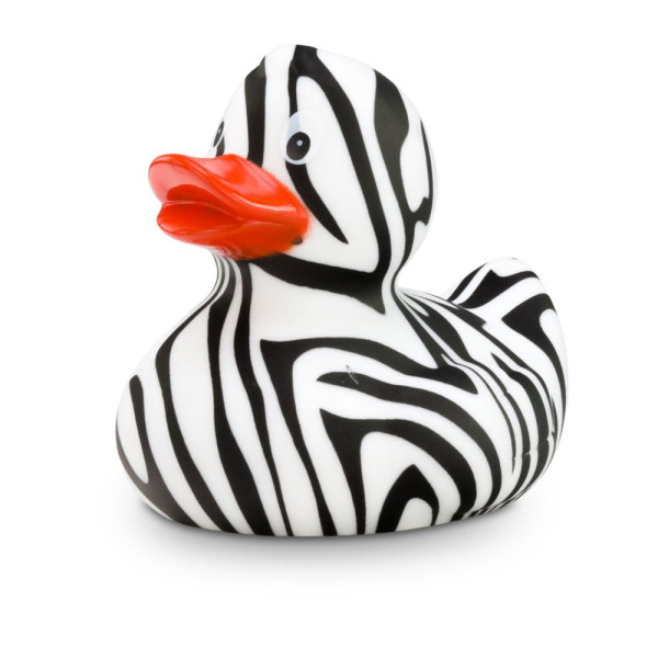Zoe Zebra ist die Meisterin der Tarnung. Ihr schwarz-weißes Gewand macht sie zu einer wahren Safari-Ente. Damit ist tierischer Badespaß garantiert. Für die sprichwörtlich einmalige Optik sorgt im Übrigen das besondere Herstellungsverfahren, denn es macht jede Badeente zu einem Unikat. So sieht keine Zoe aus, wie die andere. Wie in der echten Tierwelt. Größe: ca. 8 cm. Inklusive Quietschventil