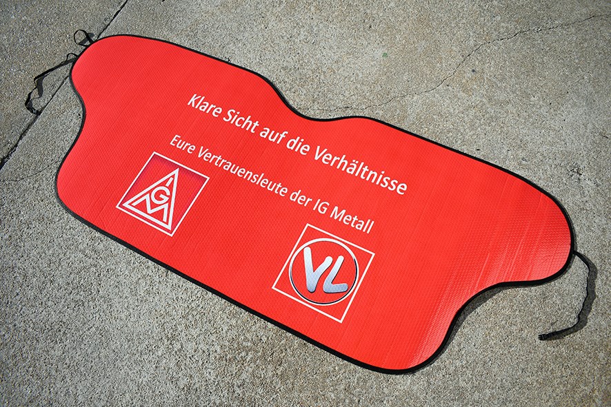 OptionenEchtfarbendruck mit Siebdruck, Non-Woven-Tasche zur Aufbewahrung als Zubehör, Farbiges Aussenband aus einer HerstellerfarbkarteWeitere Details, die Sommerversion des Schutzschildes, die XL Versionen des Winterspiels für große Fahrzeuge auch Trucks, Faltbare Versionen als Sonnenschutz, Sonnenschutz für die AutofensterKosten auf Anfrage