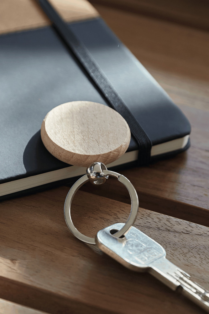 Schlüsselanhänger WOODS: Holz-Kreis, mit Schlüsselring
