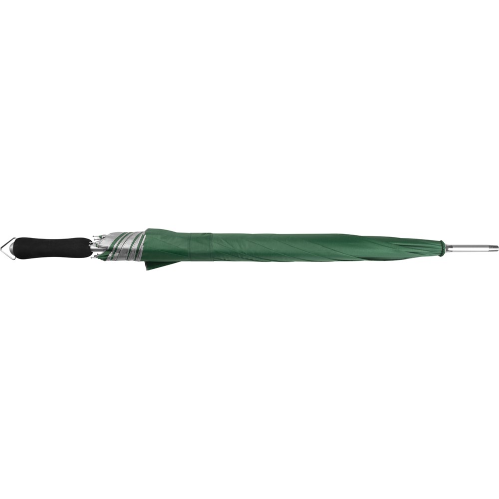 Automatikregenschirm mit Soft-Foam-Griff. Er ist extrem leicht und aus 190T Polyester gefertigt, welches innen mattsilber beschichtet ist. Ihre Werbung drucken wir auf ein Segment.