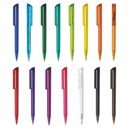 Maxema Kugelschreiber ZINK Z1 30, ein Dreh-Kugelschreiber mit glänzend gefärbtem, transparentem Gehäuse und Oberteil. Ausgestattet mit einer Jumbo-Mine mit blauer Dokumental-Tinte für bis zu 2.500 Meter Schreibvergnügen. Ober- und Unterteil sind in nicht weniger als 18 Farben erhältlich, die ab 2.000 Stück farblich miteinander kombiniert werden können.